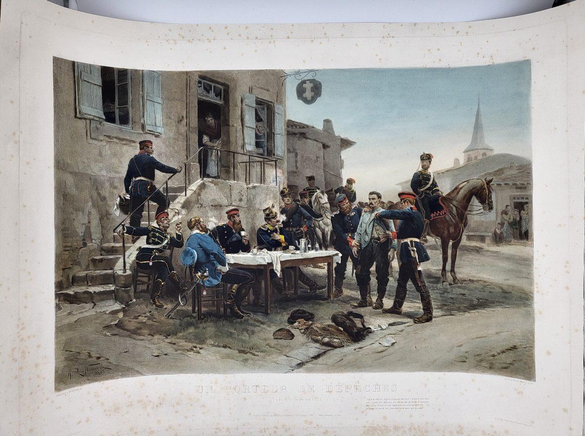 Rare Estampe monumentale tirée sur vélin et coloriée à la main dans les ateliers Goupil, à l'époque