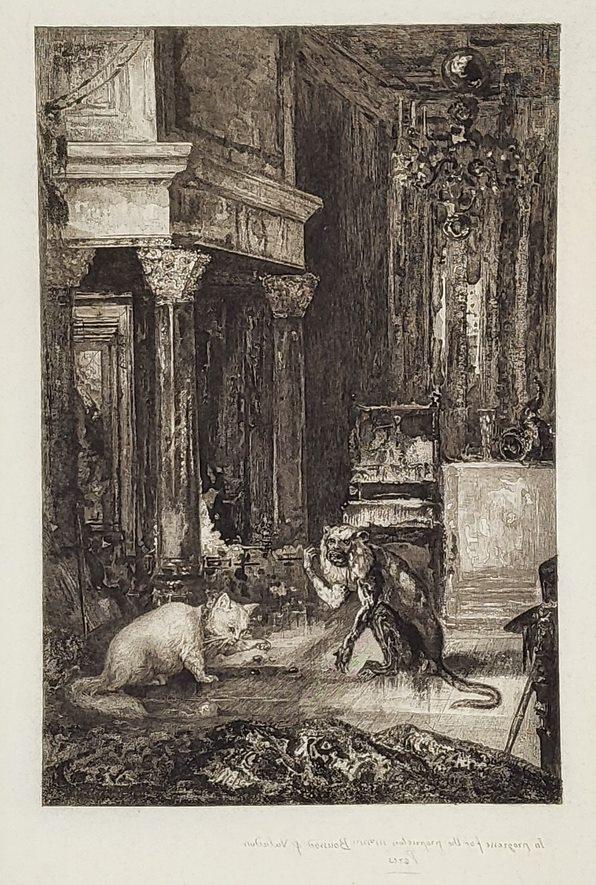 Eau-forte d'après Gustave MOREAU (1826 - 1898) pour la suite Les Fables de La Fontaine, publiée par Boussod et Valadon, successeurs de Goupil.