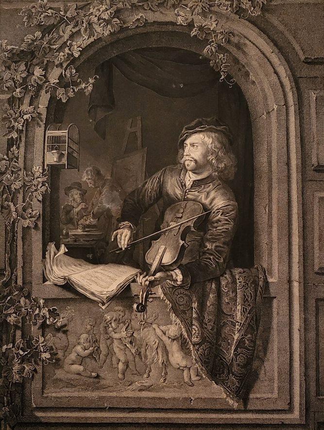 Le portrait de Gérard DOW, célèbre peintre hollandais, peint par lui-même en train de jouer du violon. 1776
