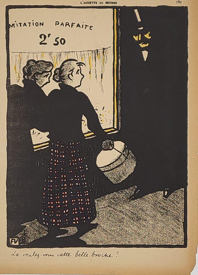 Lithographie en couleurs publiée dans le numéro spécial du 1er mars 1902 de "L'assiette au beurre", monogrammée FV dans la pierre