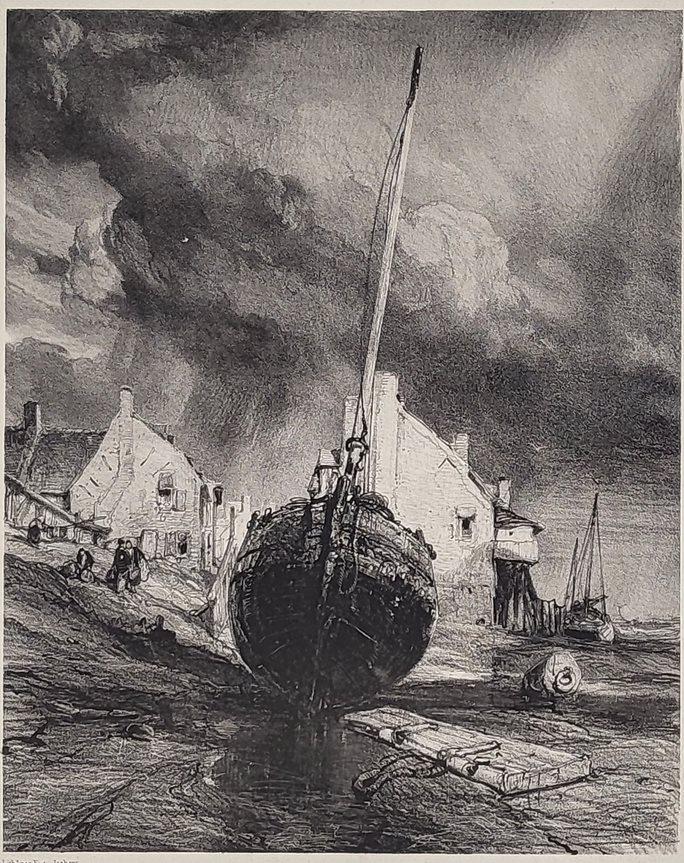 Lithographie. planche de la suite "Six marines" publiée par Morlot