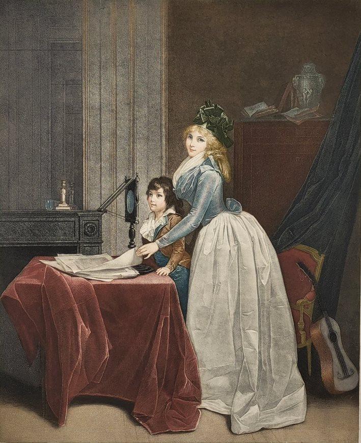 ♦ La scène représente Louise Gély, la seconde femme de Danton, et Antoine, le fils que Danton a eu avec Antoinette Gabrielle Charpentier (lien vers Wikipédia)