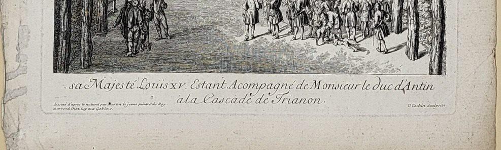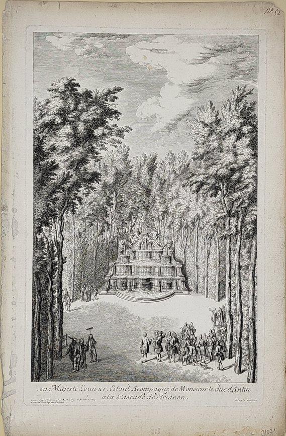 sa Majesté Louis XV Estant accompagné de Monsieur le duc d'Antin a la cascade de Trianon (sic)