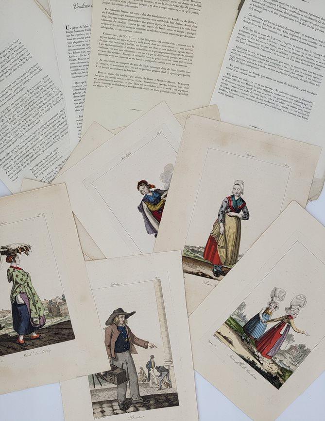 Rare ensemble de 27 planches provenant du Recueil des divers costumes des habitants de Bordeaux et des Environs, dessinés d'après nature par M. G. de GALARD, et précédés de notices rédigées par Mr S.E. GERAUD [...] A Bordeaux, chez Lavigne jeune, imprimeur du Roi, de S.A.R. Mgr le duc d'Angoulême et de la Préfecture, rue Porte Dijeaux, N°7 - [1818 /1819]