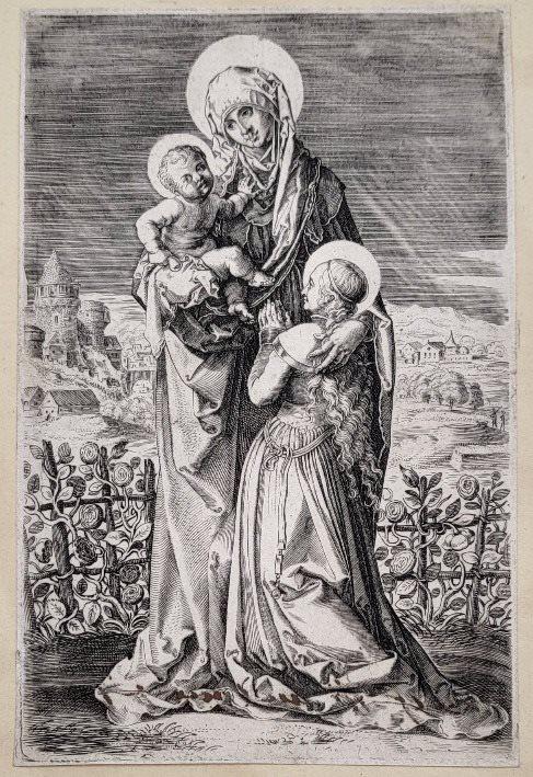 L'épreuve est fixée aux angles supérieurs sur une feuille de vélin