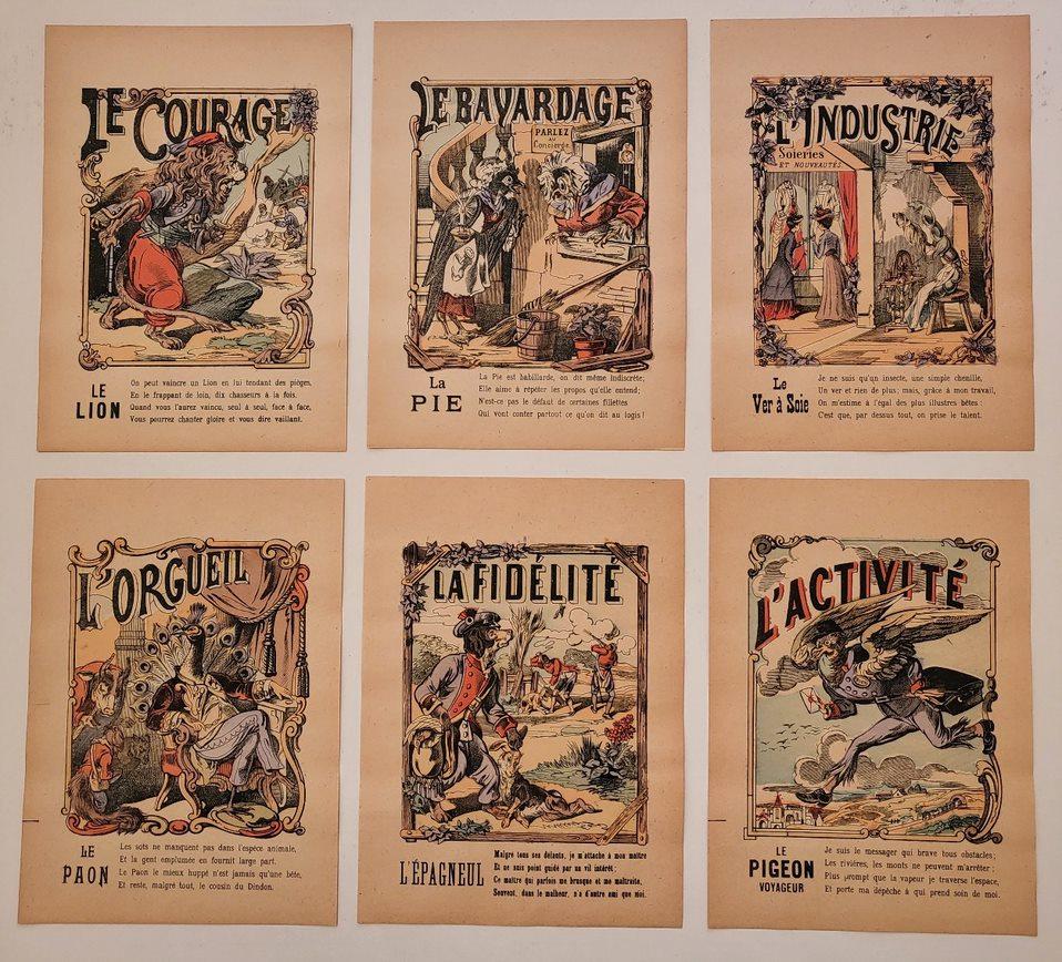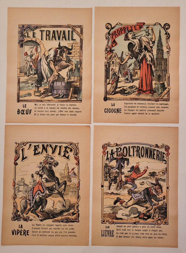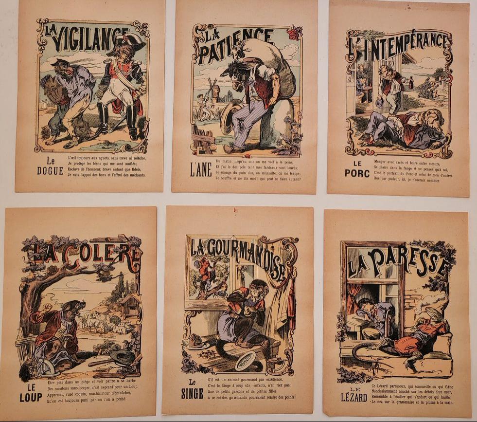 Vices et vertus personnifiés par des animaux. Suite de 16 images en couleurs.