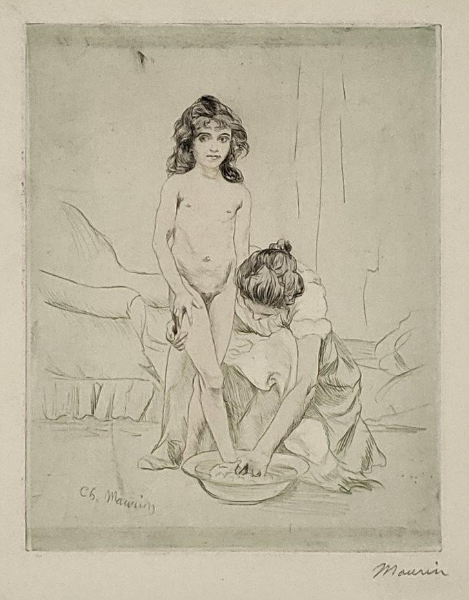 La toilette de l'enfant, 2e pl, la mère agenouillée
