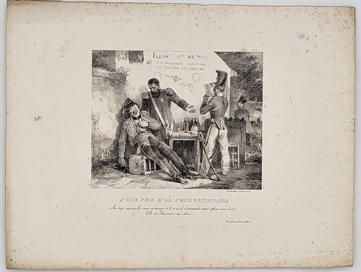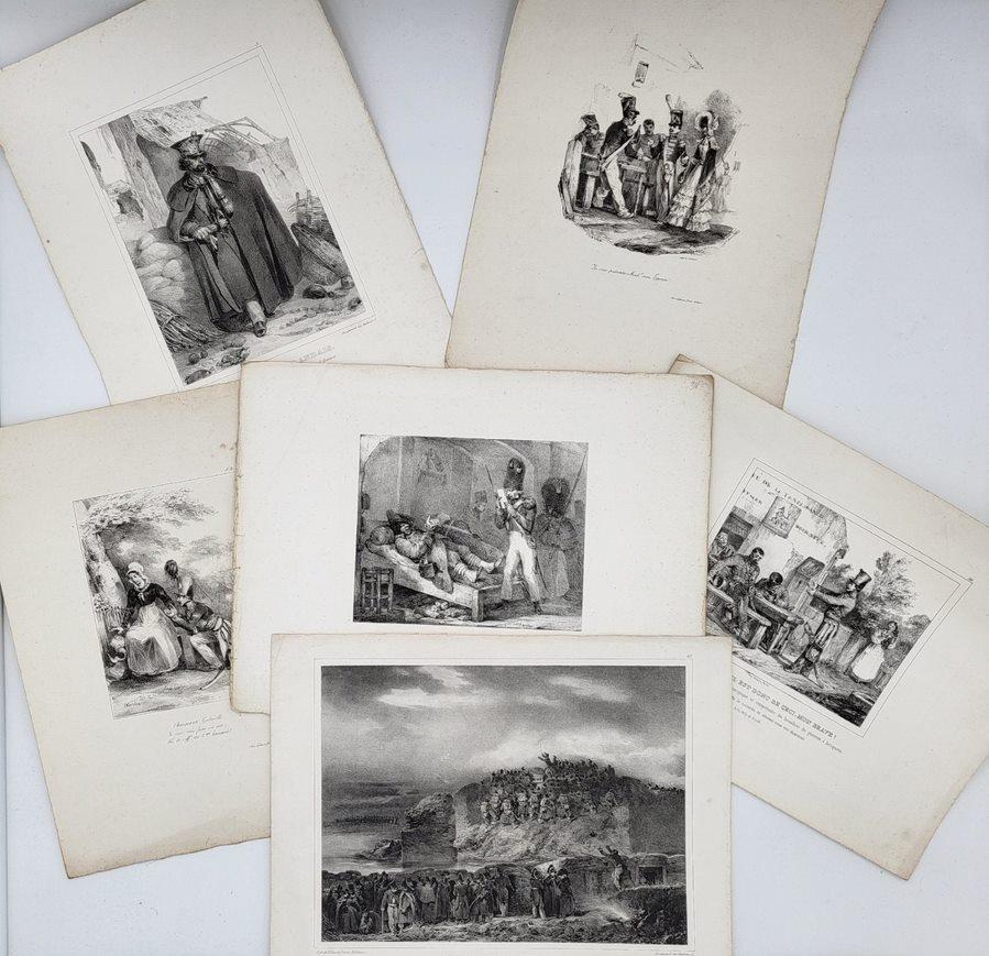 Fort lot de 43 lithographies originales de Charlet publiées par Gihaut frères et imprimées par Villain, la plupart relatives à des militaires. Vers 1830