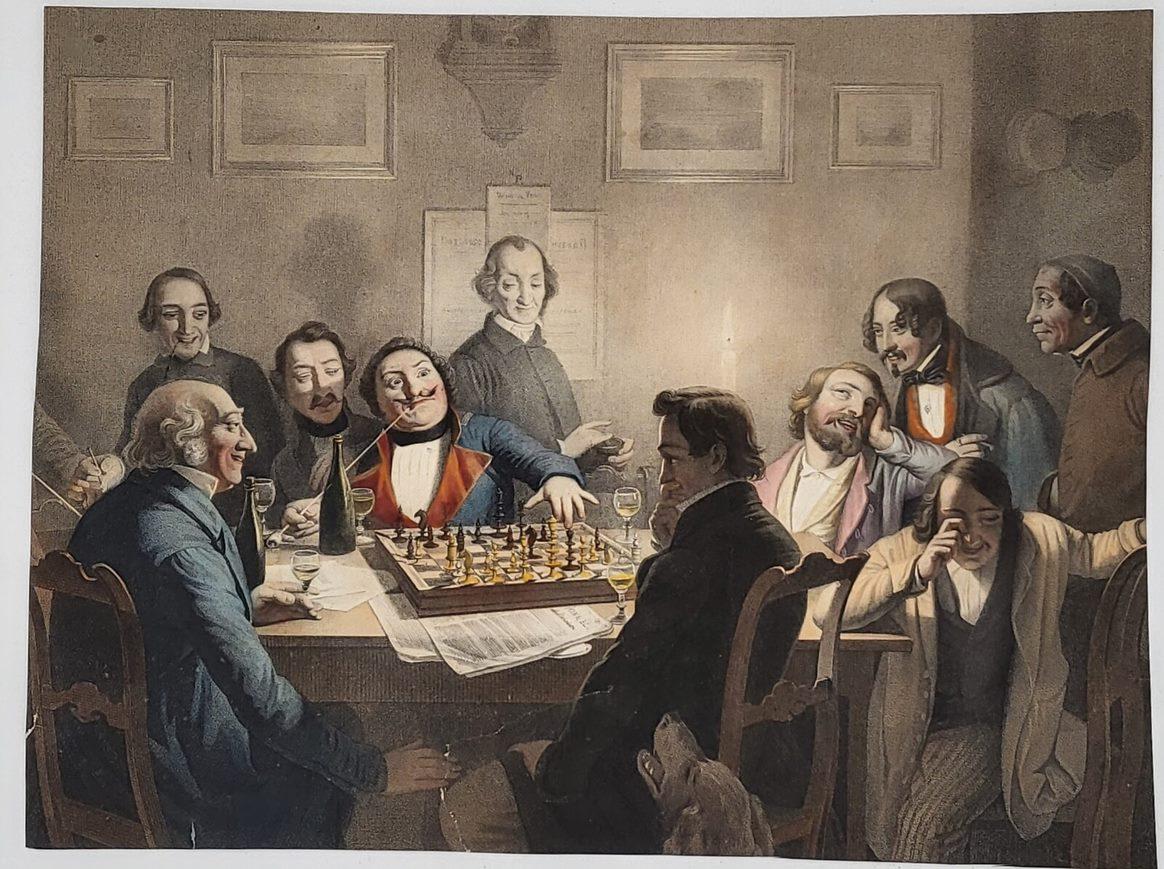 Epreuve en coloris ancien, inégalement coupée à l'intérieur du sujet (incomplète)