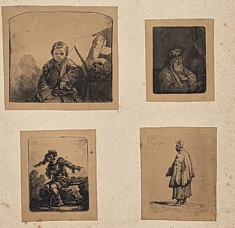 - Soldat en armure ("signée Rembrandt"). Hillemacher non décrit. La feuille : 7,5 x 6,3 cm