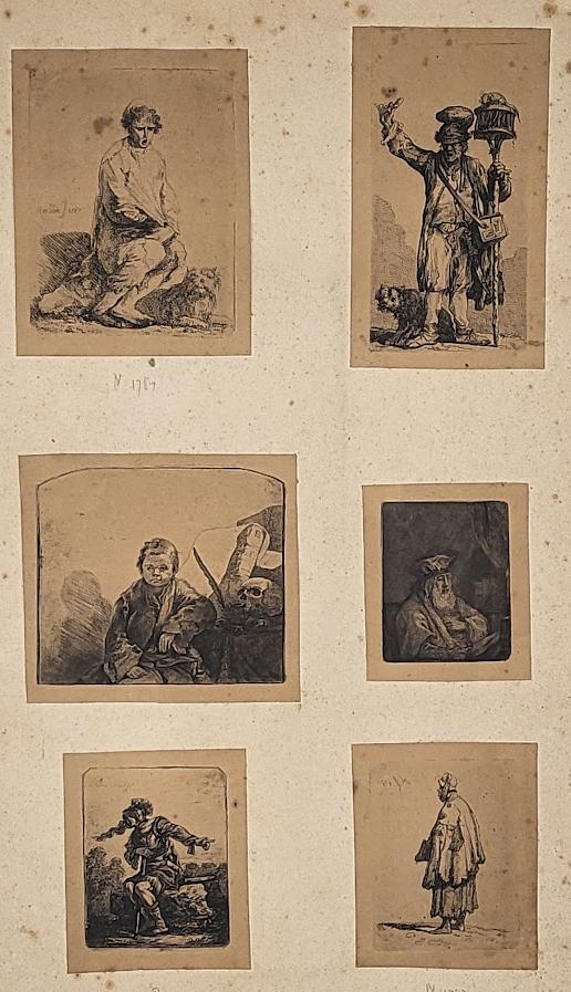 Epreuves sur vélin, d'un tirage tardif. Elles sont jaunies et fixées aux angles sur une grande feuille. Quelques rousseurs. Quelques petits plis aux points de fixation.
