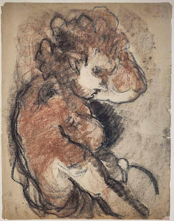 Fusain et sanguine sur papier, annoté en haut à droite : 16 octobre 1950 (?)