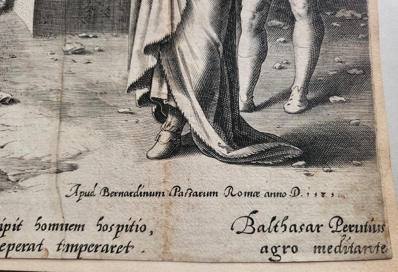 Eau-forte. Très rare épreuve du tout premier tirage à l'adresse de Bernardino Passeri, avec la date de 1585, tirée sur vergé filigrané "ancre surmontée d'une étoile" (?)