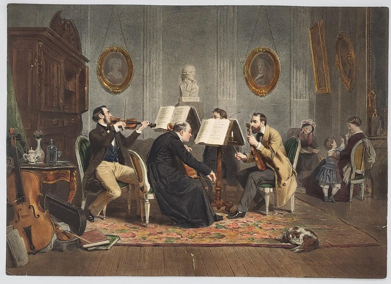 Un quatuor d'amateur, lithographie de Claude Thielley. Vers 1850