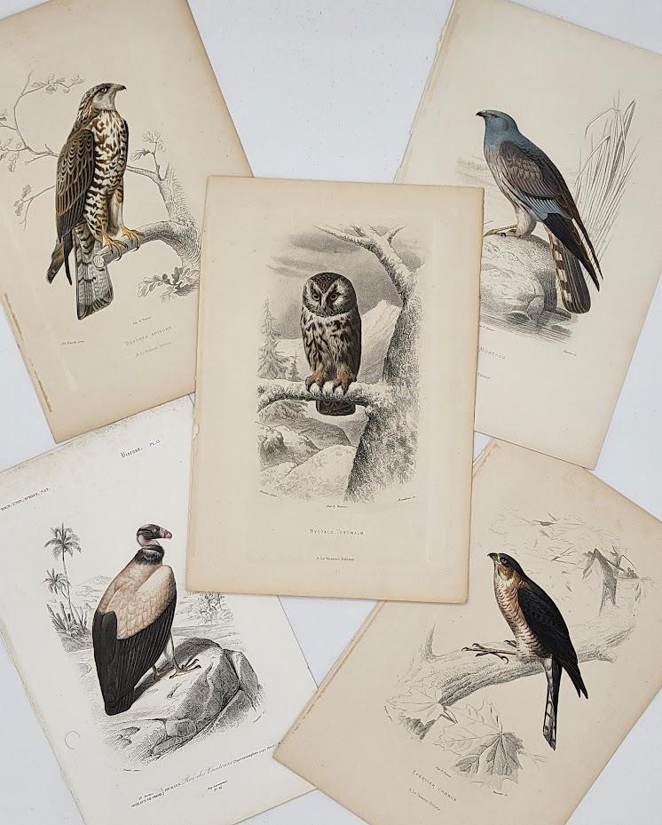 lot de 5 pl. d'ornithologie tirées d'une Histoire naturelle de Buffon