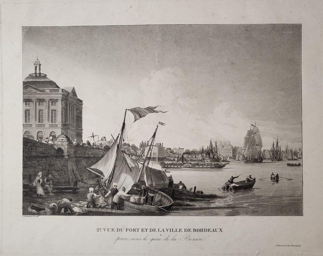 2e vue du port et da la ville de Bordeaux, prise sous le quai de la Bourse. Vers 1820