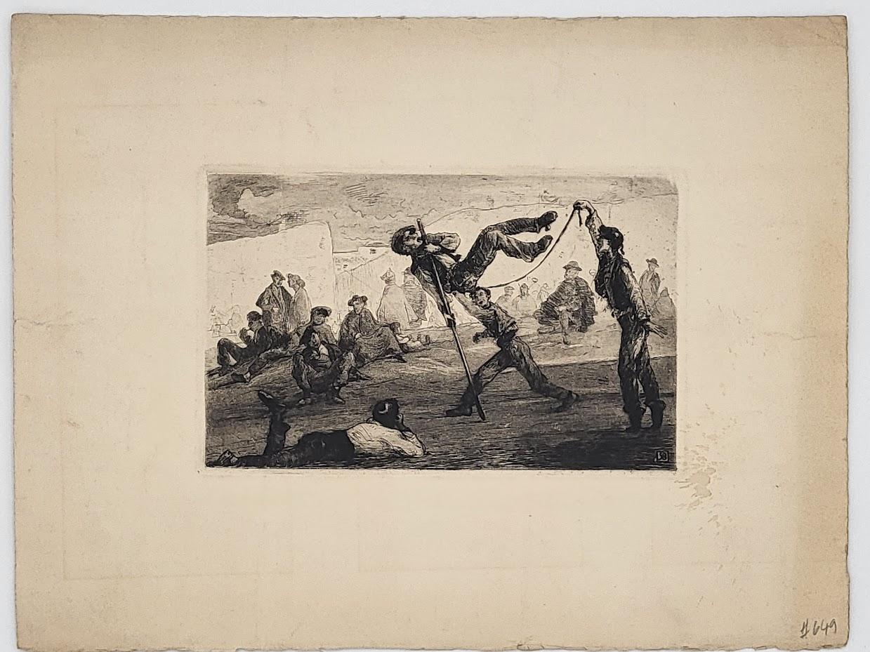 Conservation : plis, dont deux plis cassés très marqués. Légère tache claire dans la marge droite. L'estampe nécessitera une restauration.
