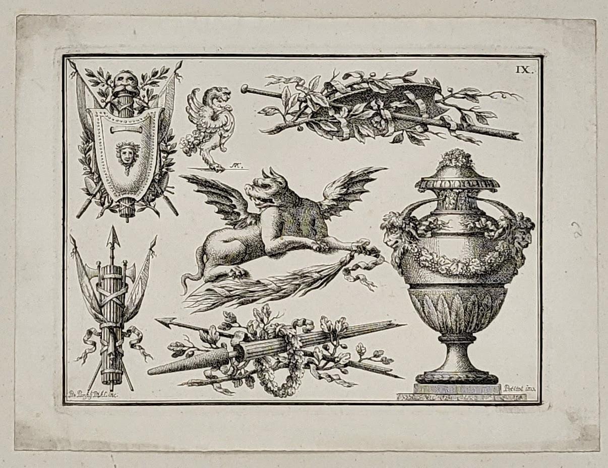 Etude d'ornements, gravure de Pio PANFILI (1723-1812)