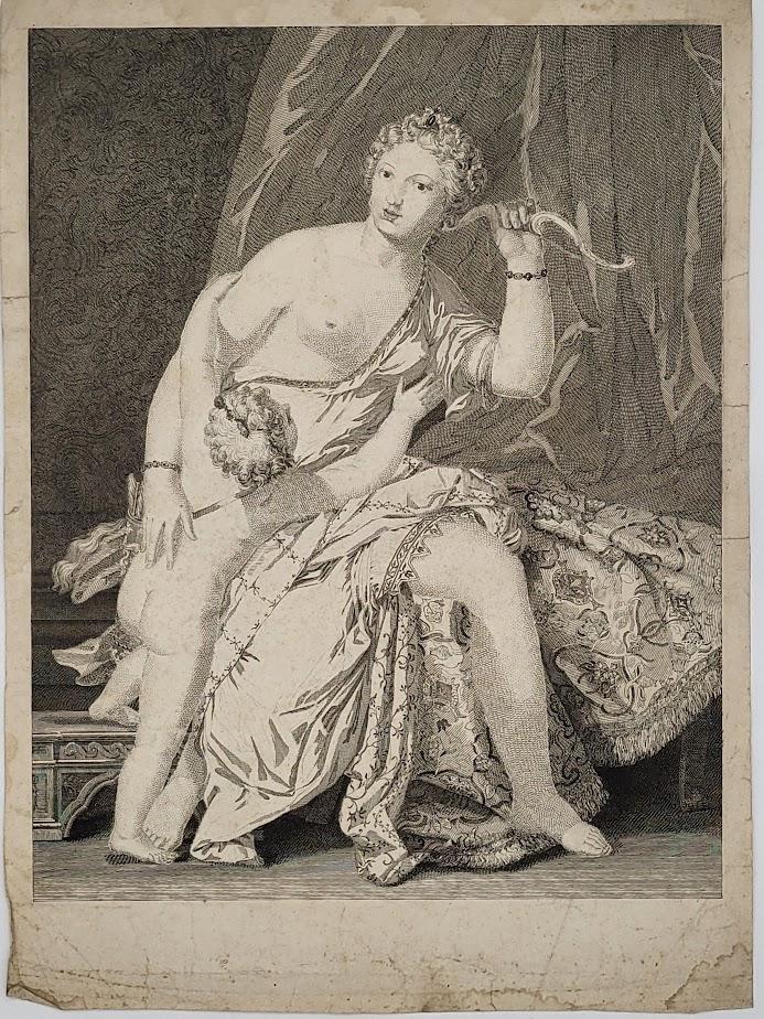Gravure sur cuivre dans le goût du Véronèse. Rare épreuve d'essai sur vergé filigrané "fleur de lis double cercle" avant toute lettre.