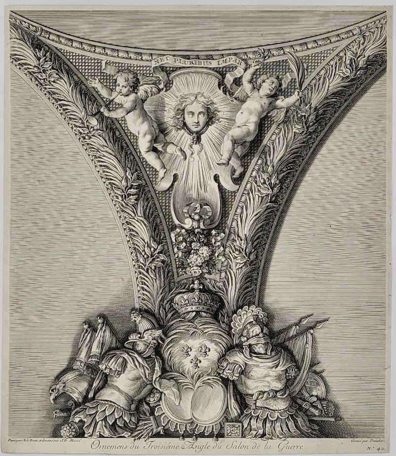 Ornement du troisième angle du Salon de la Guerre, à Versailles