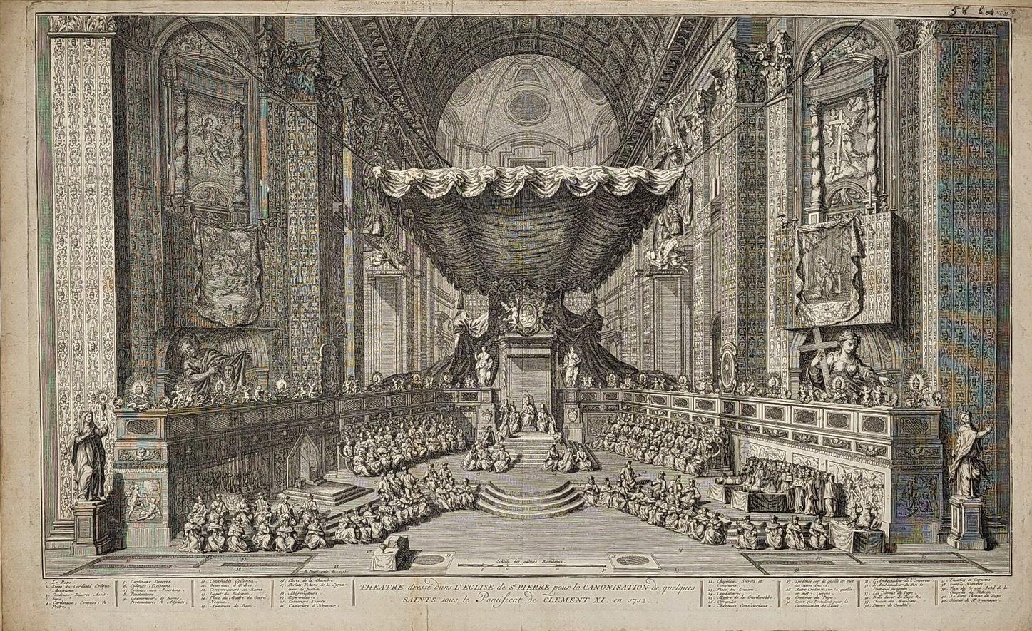 Théâtre dressé dans l'église Saint Pierre pour la canonisation de quelques saints sous le Pontificat de Clément XI en 1712 (sic)