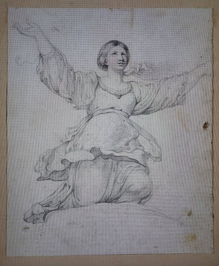 Dessin à la pierre noire avec rehauts de blanc, sur papier vergé. Monogrammé DB en bas, à droite, daté 1798 et re-monogrammé en lettres plus petites en haut, à droite. 35 x 25 cm.